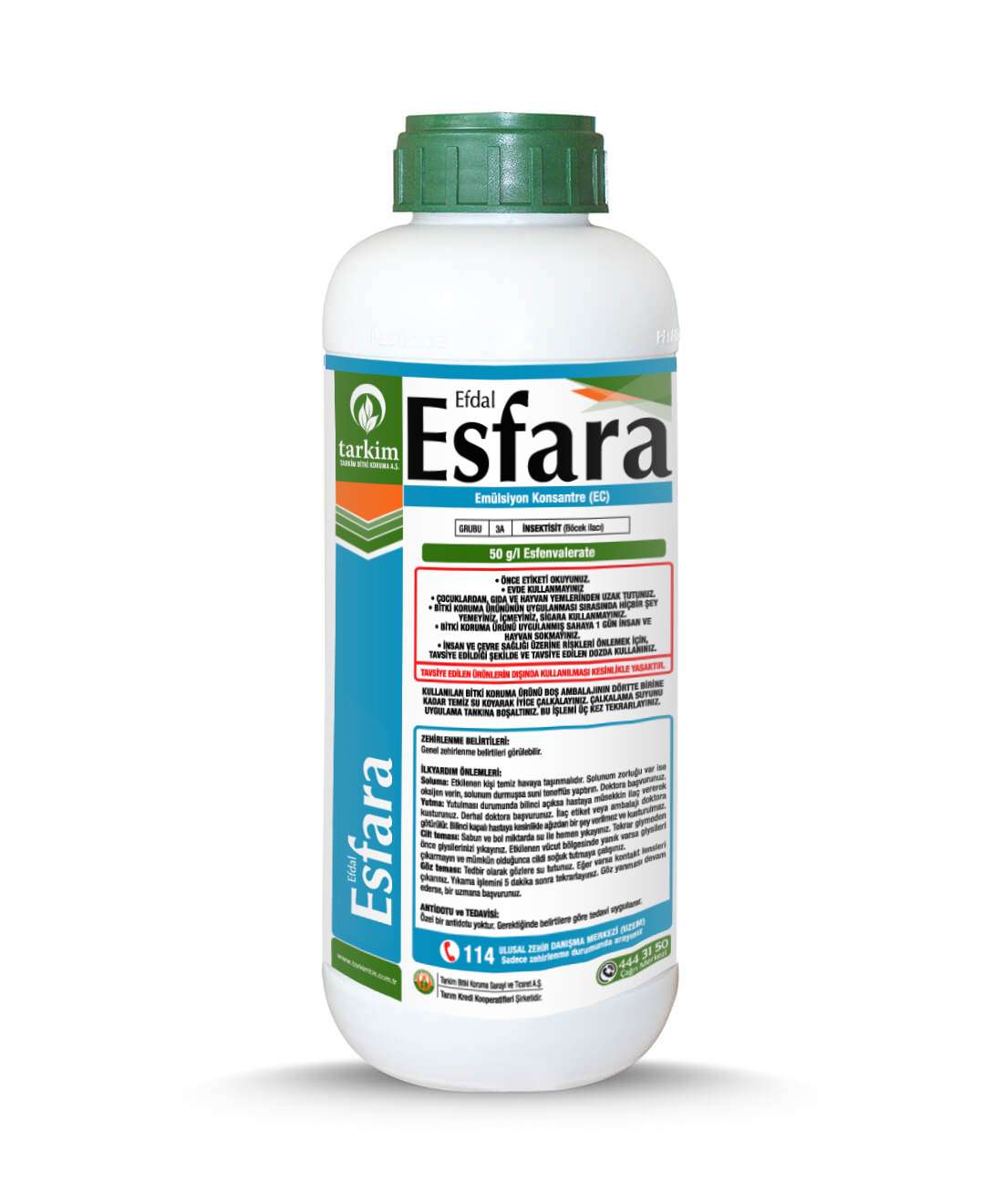 INFORMATION ABOUT RESISTANCE: The plant protection product named EFDAL ESFARA 50 EC is an insecticide classified as Group 3A according to its mechanism of action. Repeated applications of plant protection products with the same mechanism of action encourage the development of resistance. Therefore, in order to delay the development of resistance, do not exceed the total number of recommended applications of EFDAL ESFARA 50 EC within the same production season. In cases where the application must be repeated, be careful to use plant protection products with different mechanisms of action (other than Group 3A).